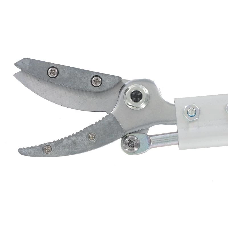 Een langarm presenteerschaar met lichtgewicht aluminium steel. Het mes is vervaardigd uit gehard verchroomd staal en is daardoor extra sterk en bestand tegen roest. Het handvat is 180° roteerbaar en kan zodoende ook de takken in een moeilijke hoek knippen.