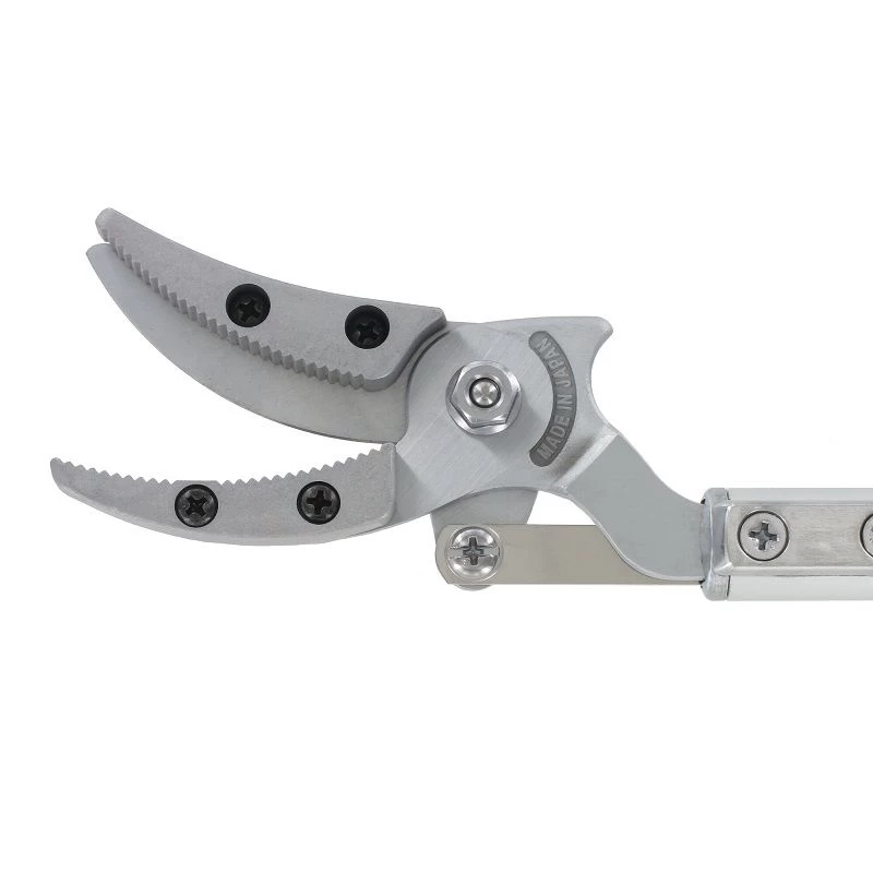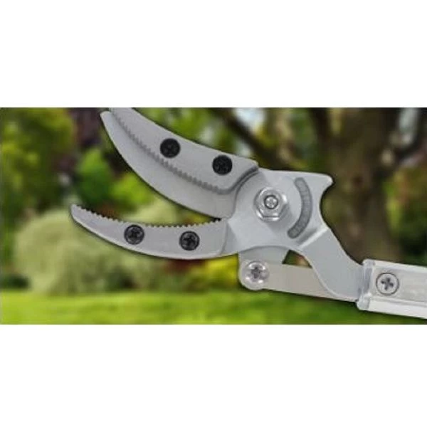 Langarm presenteerschaar met lichtgewicht aluminium steel. Het mes is vervaardigd uit gehard verchroomd staal en is daardoor extra sterk en bestand tegen roest. Het handvat is 180 graden roteerbaar, en kan zodoende ook de takken in een moeilijke hoek knippen.