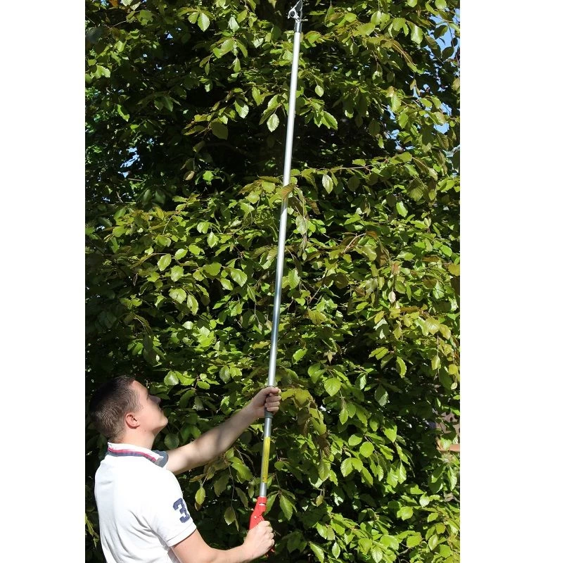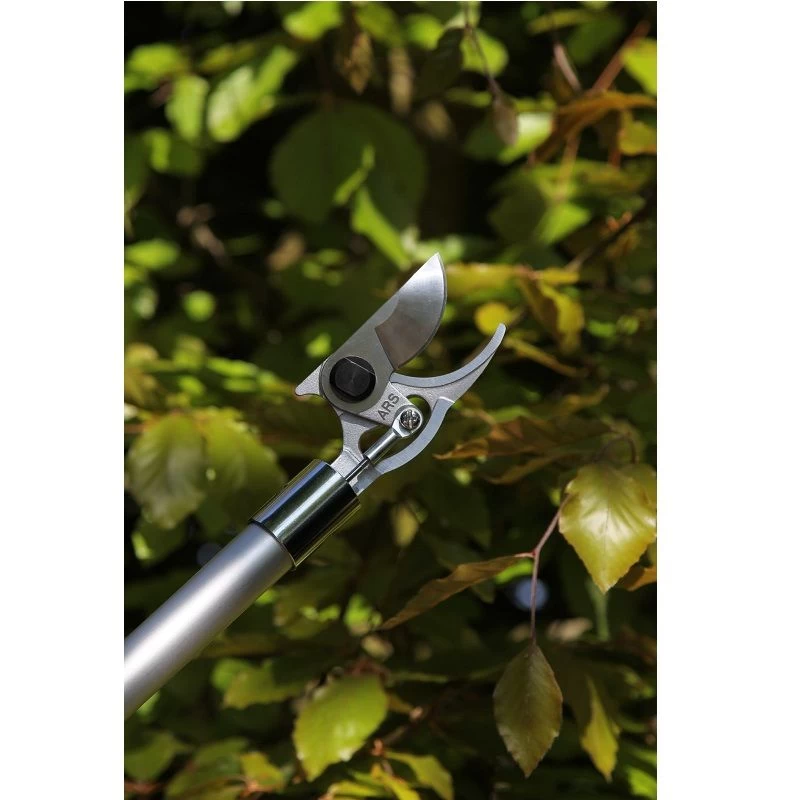 Langarm snoeischaar met lichtgewicht, aluminium steel. Het mes is vervaardigd uit gehard, verchroomd staal en is daardoor extra sterk en bestand tegen roest. Het handvat is 180ยฐ roteerbaar en kan zodoende ook de takken in een moeilijke hoek knippen. Met extra sterk mes voor extra kracht.