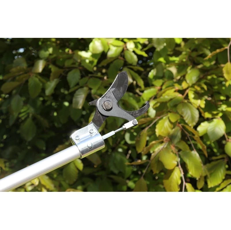 Langarm takkenschaar met lichtgewicht aluminium steel. Het mes is vervaardigd uit gehard verchroomd staal en is daardoor extra sterk en bestand tegen roest. Het hevelmechanisme zorgt ervoor dat ook dikkere takken geknipt kunnen worden. De schaar is voorzien van een rubberen schokdemper, wat blessures aan armen en pols voorkomt. De schaar is eenvoudig te demonteren in verband met onderhoud.