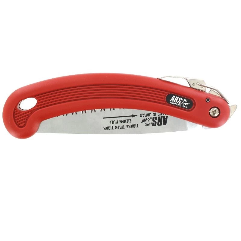 De inklapbare snoeizaag ARS210DX is spits toelopend, licht gebogen en voorzien van het unieke gepatenteerd zaagblad van 16.5cm. Snel en makkelijk zagen kost minder moeite met deze scherpe tanden en de wijze waarop deze zijn geplaatst. Het blad is vervaardigd uit gehard verchroomd staal en is daardoor extra sterk, bestand tegen roest en makkelijk te onderhouden. Voorzien van een rood kunststof handgreep en een veiligheidssluiting voor zowel gesloten als geopende stand.