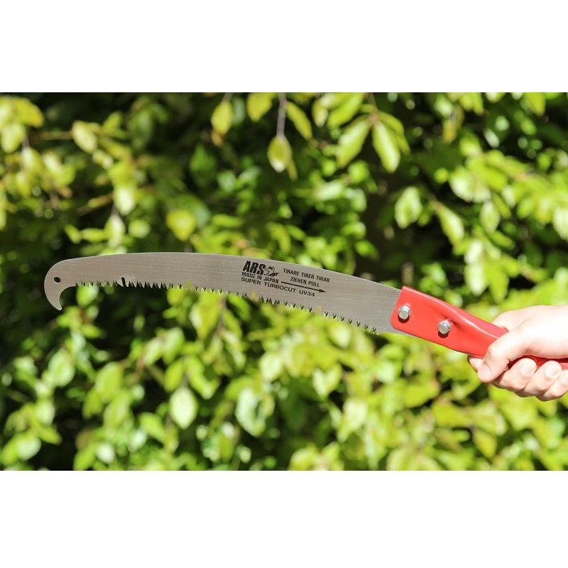 Professionele snoeizaag incl. holster. Het zaagblad is vervaardigd uit SK5 staal. De zaag heeft een spits toelopend, gebogen blad voor een betere grip in de zaagsnede. De zaag is voorzien van de haakvormige punt, voor het verwijderen van kleine takjes. De TURBOCUT tanden snijden moeiteloos door ieder hout soort. Zowel tegen de structuur / draad van het hout in als met de structuur / draad mee. Geschikt voor de EXP serie telescoop stelen.
