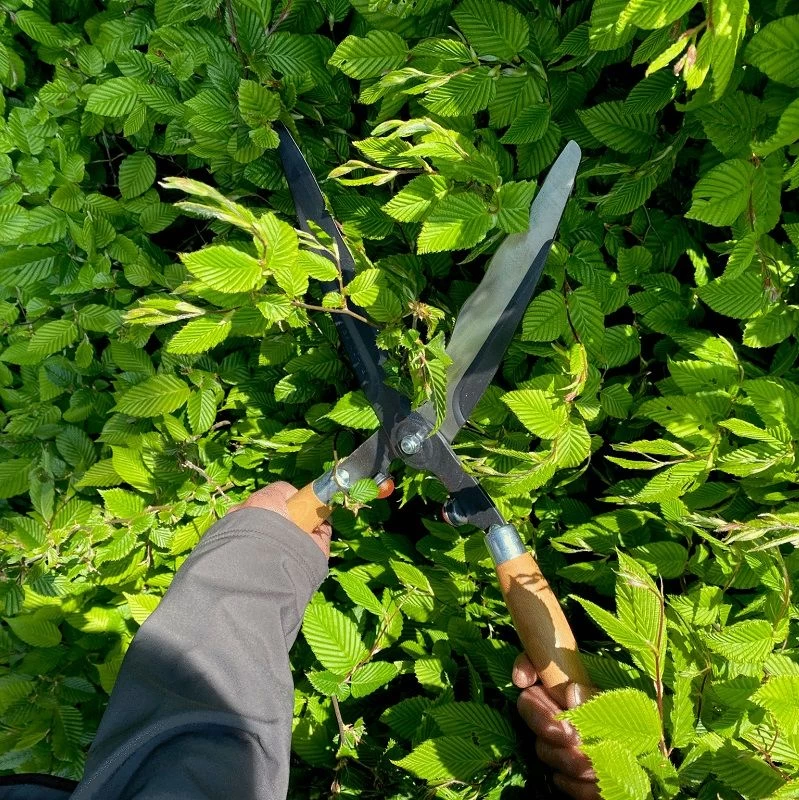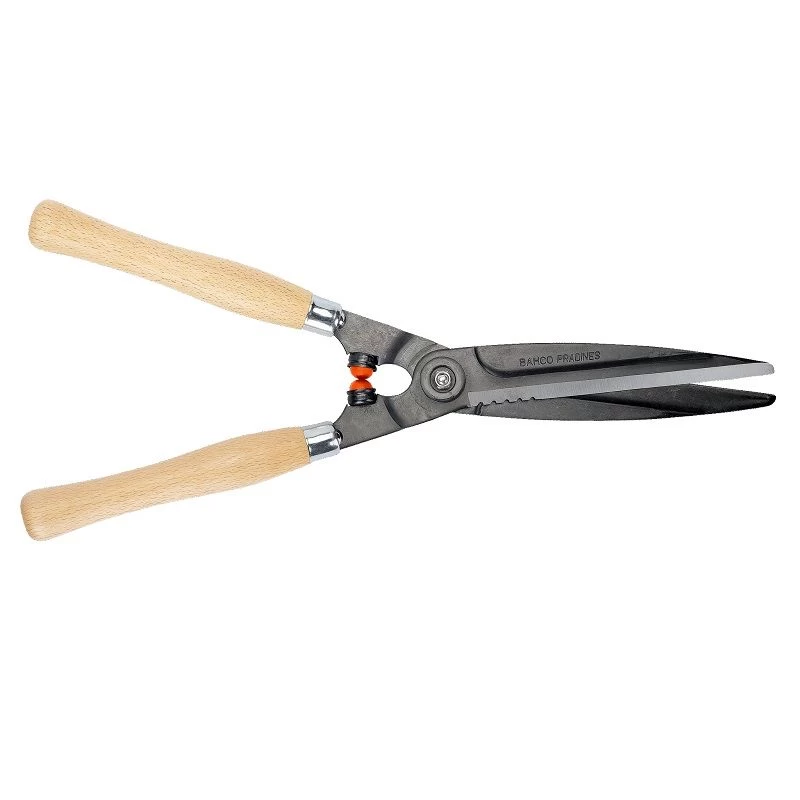 - Traditionele heggenschaar met houten grepen voor alle typen heggen.