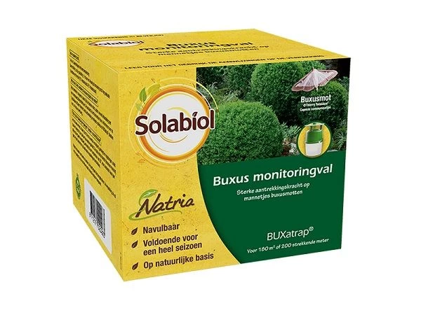 De BUXatrap is ideaal voor het identificeren van een besmetting met de buxusmot. De mannetjes worden aangetrokken door het feromoon, aanwezig in deze monitoring mottenval, en vallen in de container. De doorzichtige houder laat een gemakkelijke controle op aanwezigheid van motten toe.