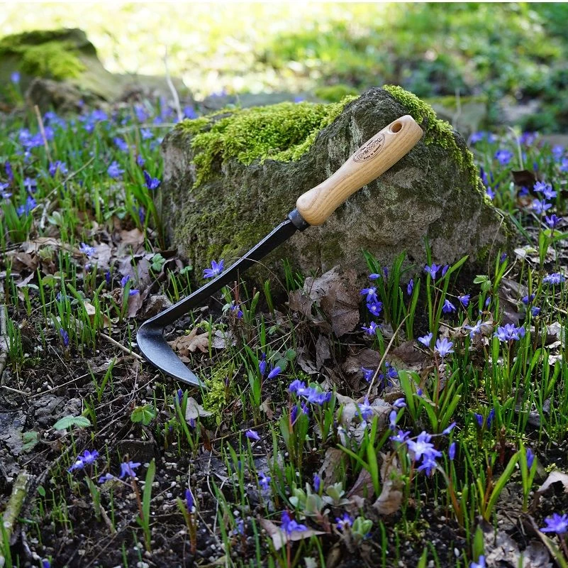 Een rechtshandige Japanse handhak met een essen handvat 14 cm