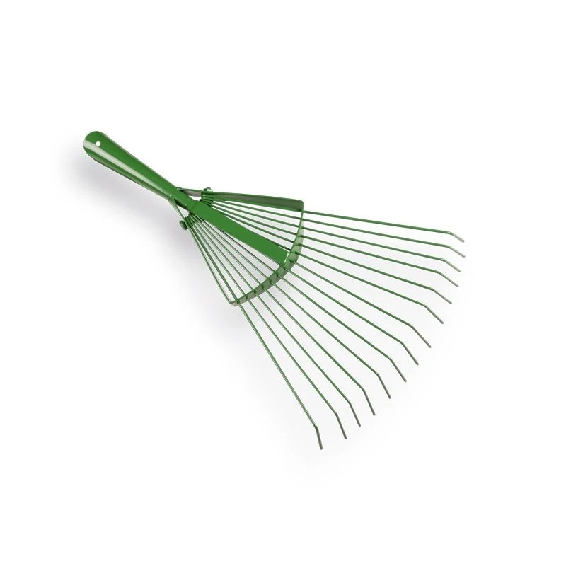 Een professionele bladhark met 14 ronde verenstalen tanden. De buitenste tanden hebben een dikte van 3 mm, voor extra stabiliteit. Deze bladhark is uitermate geschikt voor het bijeen brengen van gras, bladeren en voor los materiaal in gazon of border en om een viltlaag uit het gazon te verwijderen. Deze Farmer bladhark wordt veelvuldig gebruikt in de hovenierssector.