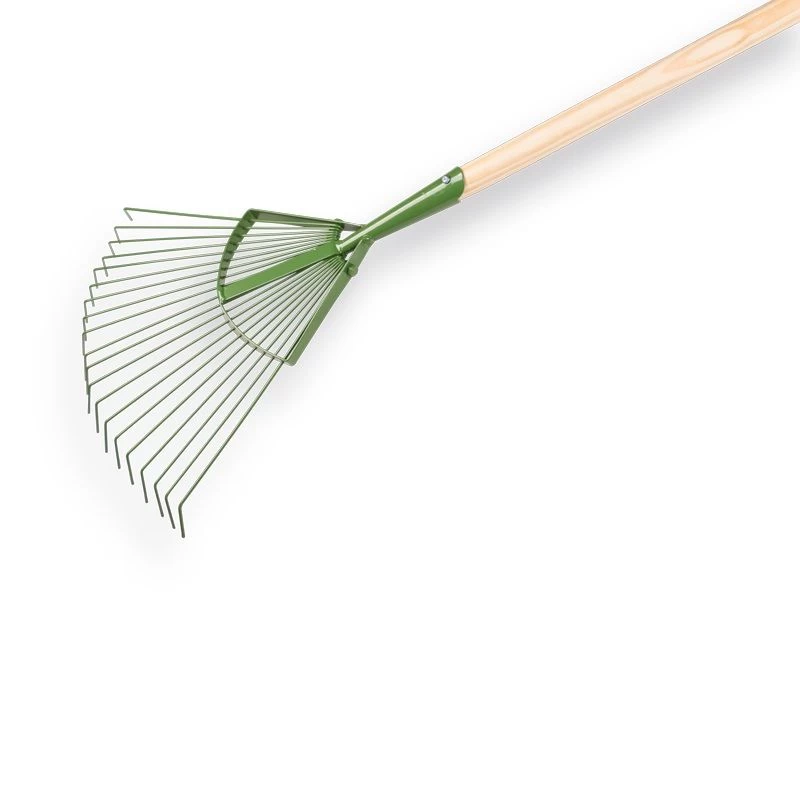 Een professionele bladhark met 20 ronde verenstalen tanden. De buitenste tanden hebben een dikte van 3 mm, voor extra stabiliteit. Deze bladhark is uitermate geschikt voor het bijeen brengen van gras, bladeren en voor los materiaal in gazon of border en om een viltlaag uit het gazon te verwijderen. Deze Farmer bladhark wordt veelvuldig gebruikt in de hovenierssector.