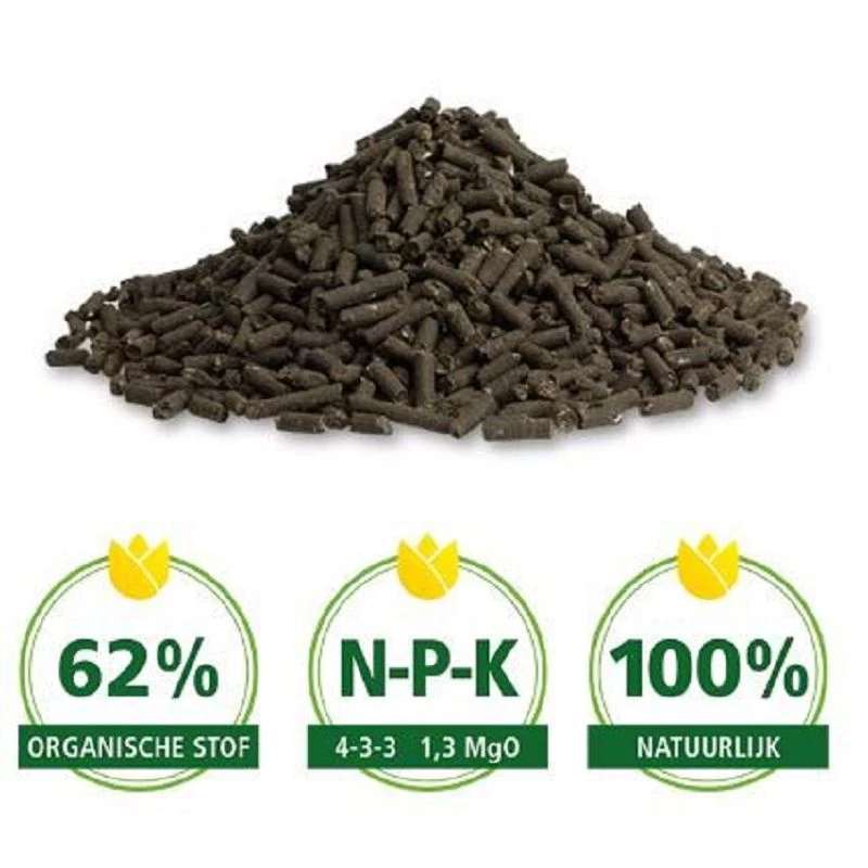 Kippenmestkorrel, geurarm! Het granulaat van pluimvee is uitermate geschikt is voor gazons, siertuin, moestuin, fruit, rozen, bol- en knolgewassen.