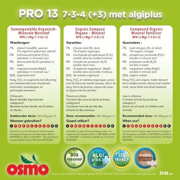 OSMO PRO 13 BIO NPK 7-3-4(+3)MgO + Zeewier