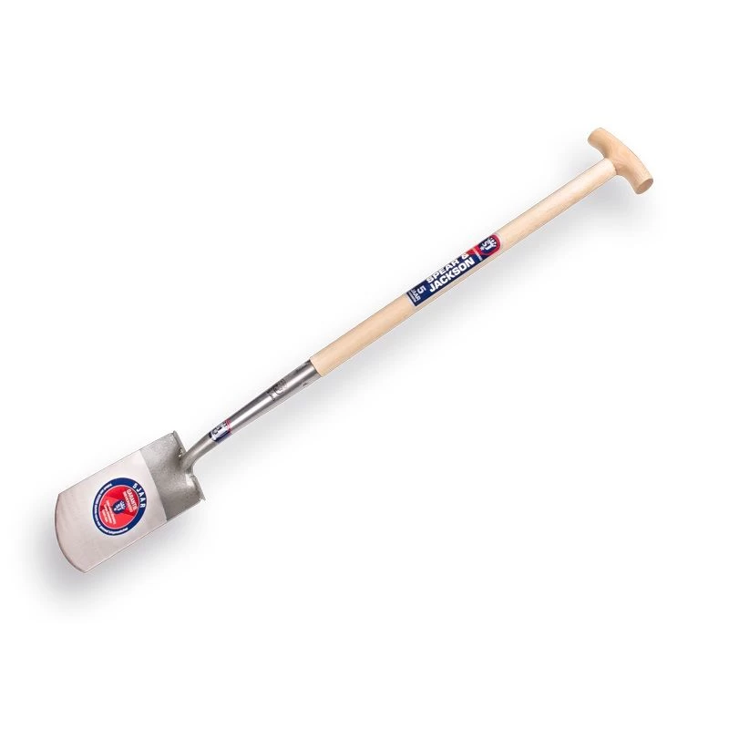 Spear & Jackson 1041 TRD spade met opstap en steel. De Spade 1041 TRD heeft een gepolijst blad compleet met opstapjes. De spade wordt compleet geleverd met een houten T-steel 80cm lengte.