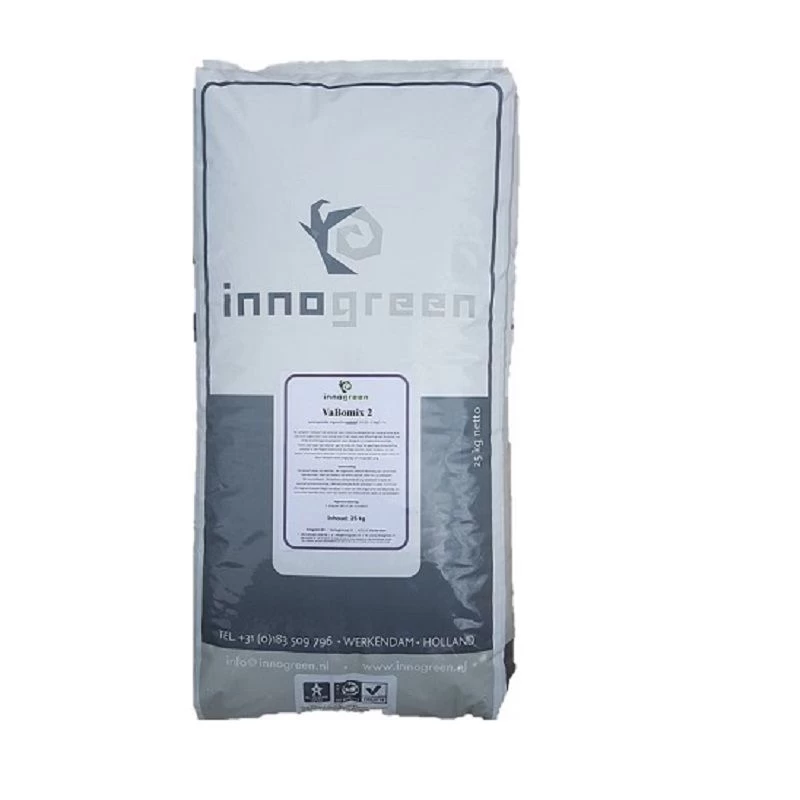 Innogreen VaBomix 2 is de allround meststof voor borders, gazons, hagen en bomen bruikbaar in het najaar. Deze meststof is breed inzetbaar van oktober t/m februari of het jaarrond op gronden waar een gebrek aan kalium is. Het hogere gehalte kalium in deze meststof zorgt voor afharding van het gewas in de winter en beschermt tegen schimmelaantastingen. Hierdoor zijn de planten minder vatbaar voor ziektes en plagen en komen sterker en vitaler de winter uit. Het gazon blijft mooier van kleur en komt zo groener de winter uit. VaBomix2 kan tevens worden ingezet om kalium tekorten op te heffen.