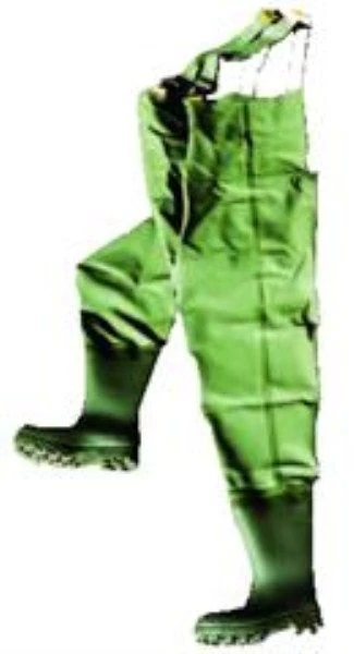 Broek met PVC-laarzen, bestand tegen olie, vet, verdunde zuren en is waterdicht.