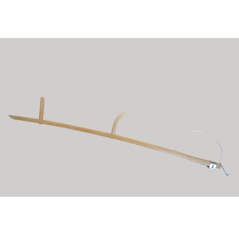 Een gebogen model zeisboom met beslag. Een houten zeisboom voor het maaien van gras, graan en onkruid.